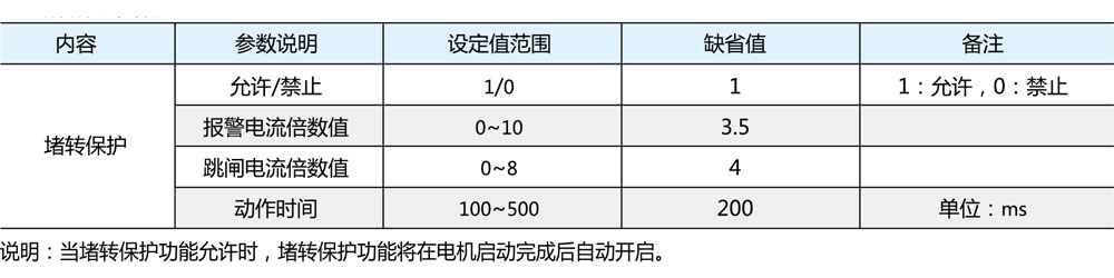 电机驱动设备出现严重运转堵塞或电机超负荷运行定义为堵转故障。当三相电流与额定电流的比值均达到超过堵转整定系数 (4~8)时启动堵转户(la/le > 4 & Ib/le > 4 & Ic/le > 4 ) ●