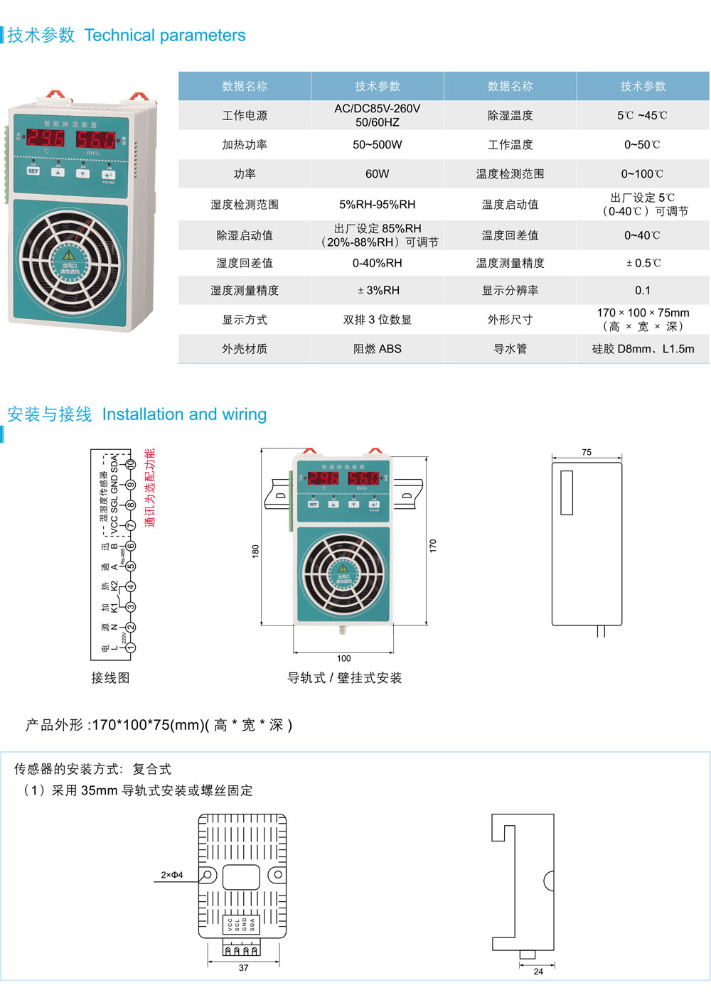 自动运行与手动除湿功能切换、温度启动值和除湿启动值可调;